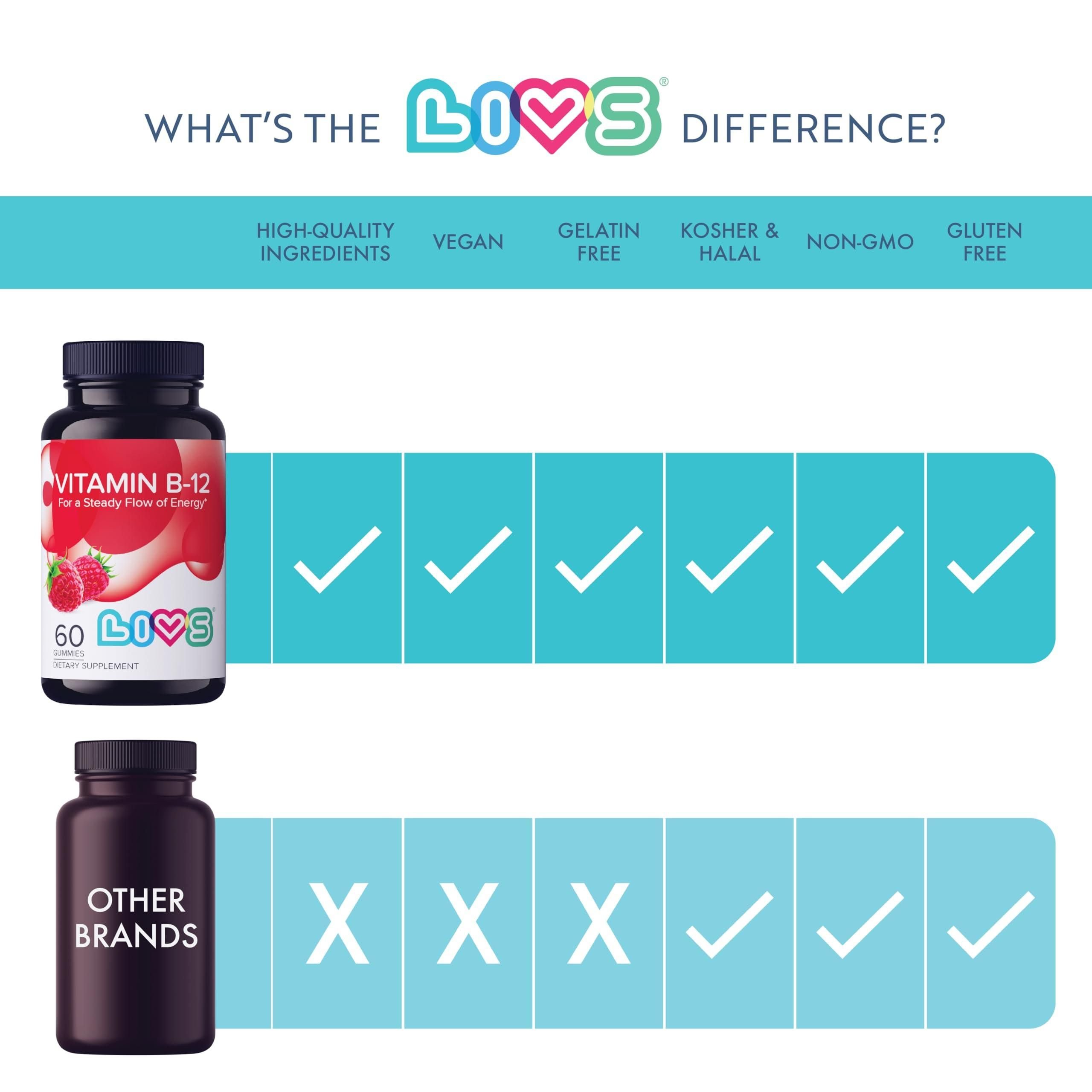 1.contains: 60 natural raspberry flavored, pectin-based, tapioca blended livs vitamin b12 gummies with methyl b12, in a non-gmo, kosher, halal, vegan formula, with no artificial flavors. a delicious vegan b12 vitamins product that the whole family can enjoy.